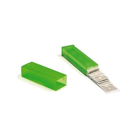 Emballée en toute sécurité et rangée dans une boîte.coulissante en plastique pratique. Les lames restent au sec et sont toujours emballées d’une manière sûre.
